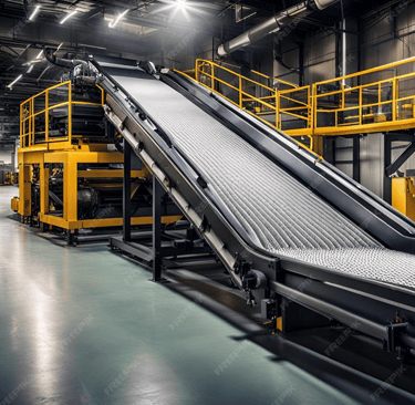A conveyor belt system is a mechanical transport solution that moves products between production stages automatically, improving workflow consistency and reducing manual handling.